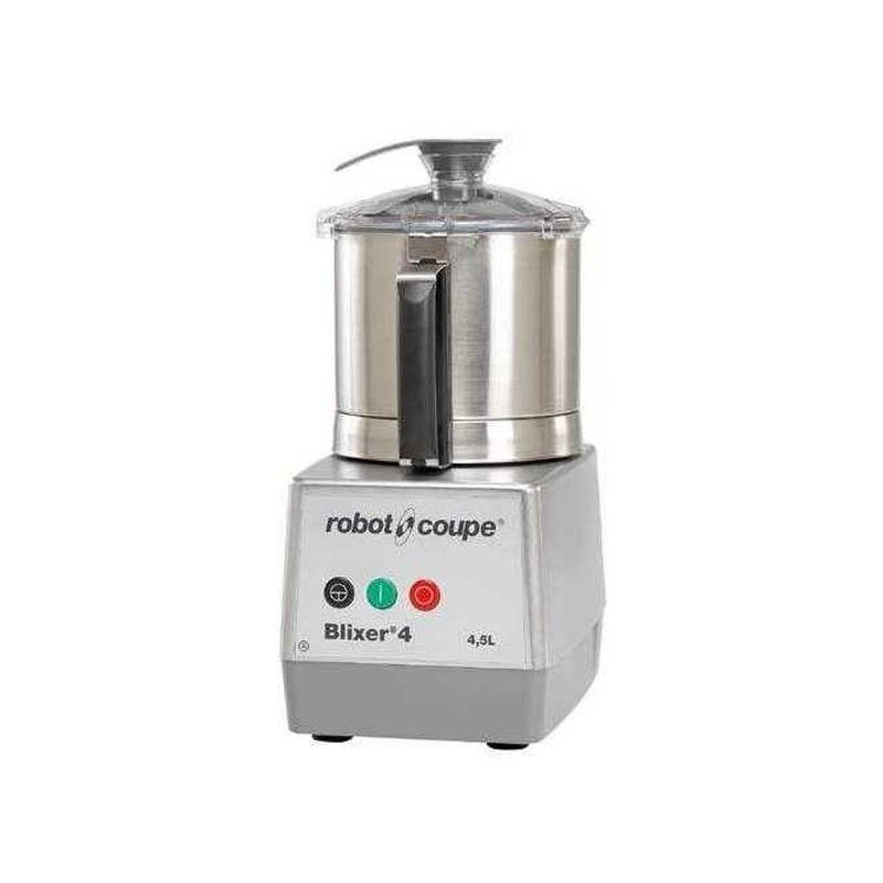 Cutter Mixer type: Blixer 4 - 1V ROBOT COUPE Dimensions WxDxH: 240 x 330 x 480 mm 1 speed 3000 rpm - Pulse function S/S Bowl capacity 4,5 Ltr - metal motor block number of covers: 2-15 covers Delivered with 1 Serrated Blade Water tight lid equipped with a bowl scraper. Electrical connection: 230V & 1 & 50 Hz - 900 W