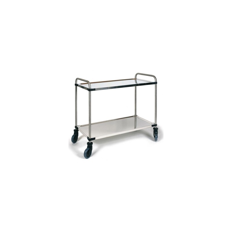 Serving & clearing trolley type SW-850RL-2S RIEBER Dimensions WxDxH: 575 x 875 x 950 mm Storage capacity: 2 shelves (800x500) 4 wheels, 2 swivel with brakes, plastic bumper on each corner Finish: Stainless Steel